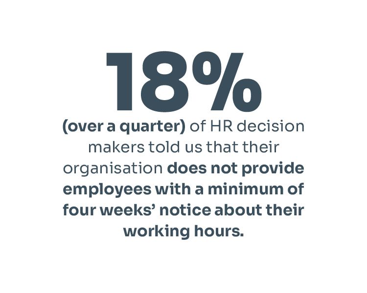 - Provide at least 4 weeks’ notice to workers of their shifts, so they can plan their lives.